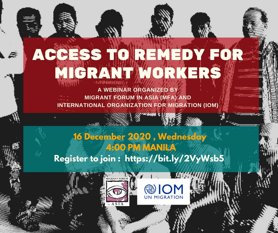 Migrant Forum in Asia in collaboration with the International Organization for Migration (IOM) is organizing a webinar on: Access to Remedy for Migrant Workers. The webinar will be held on Wednesday, 16 December 2020 at 4PM Manila time. Register and join us for the webinar! Register to join the webinar: https://bit.ly/2VyWsb5 Click here to check […]