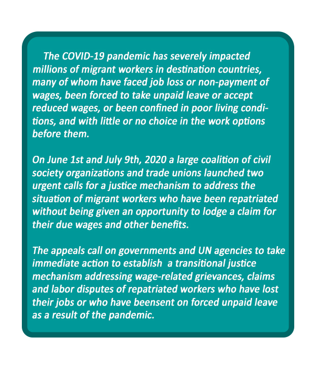 For migrant workers in particular, the pandemic has heightened pre-existing problems of wage theft. Some businesses have taken advantage of the current pandemic, to unlawfully dismiss and withhold the wages of the migrant workers that they employ. Many workers return home empty handed, having been coerced to forgo their due wages and benefits they were entitled to, while other continue to work under exploitative conditions and reduced wages for fear of losing their livelihood in the climate of a global economic recession.