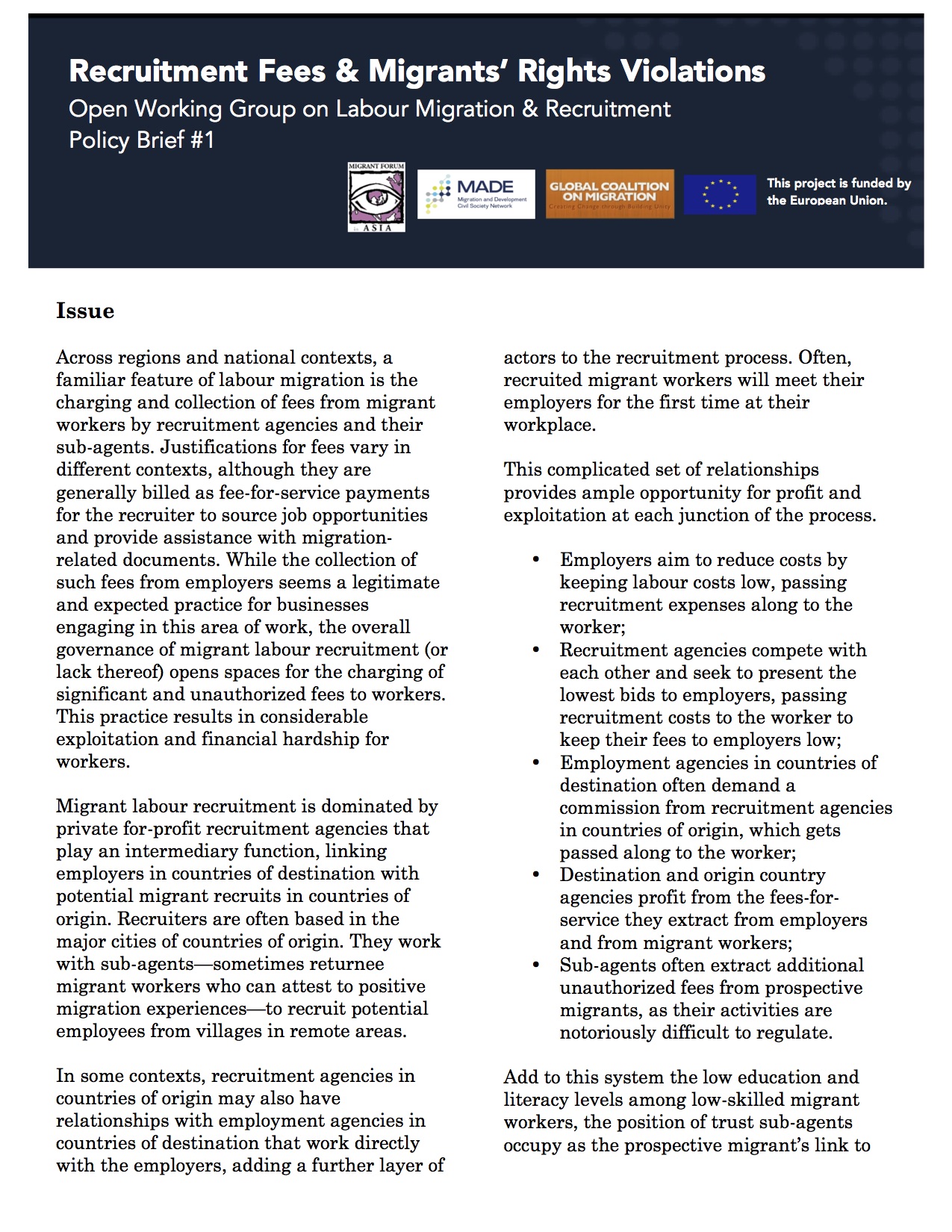NO WORKER SHOULD HAVE TO PAY RECRUITMENT FEES TO SECURE DECENT WORK!